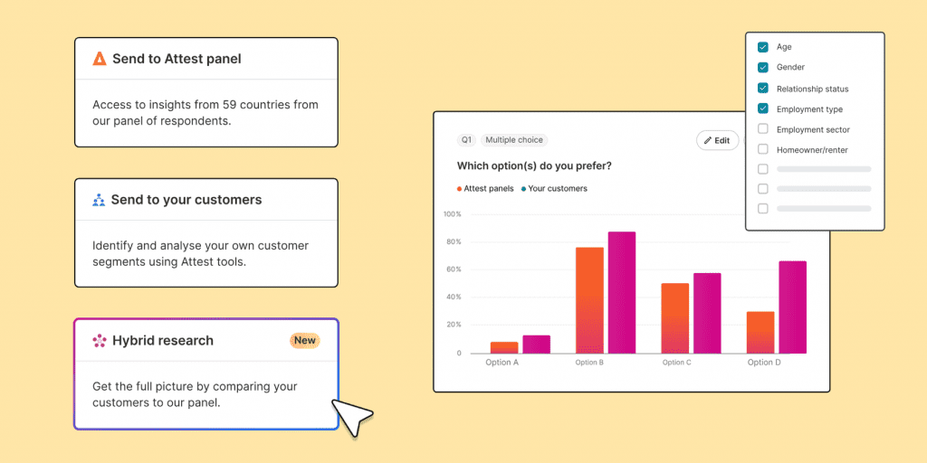 Attest’s Hybrid audience platform is ideal for the essential consumer research use cases:
